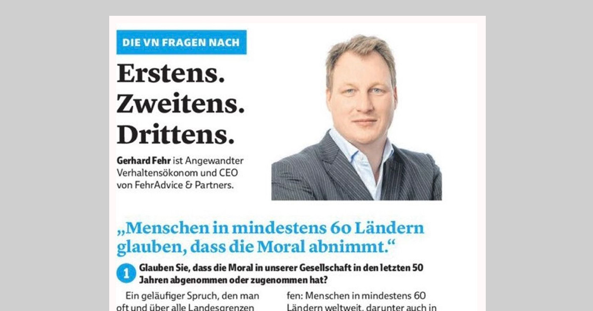 News12. Juli 2023Hat die Moral in unserer Gesellschaft ab- oder zugenommen? Gerhard Fehr in den «Vorarlberger Nachrichten»